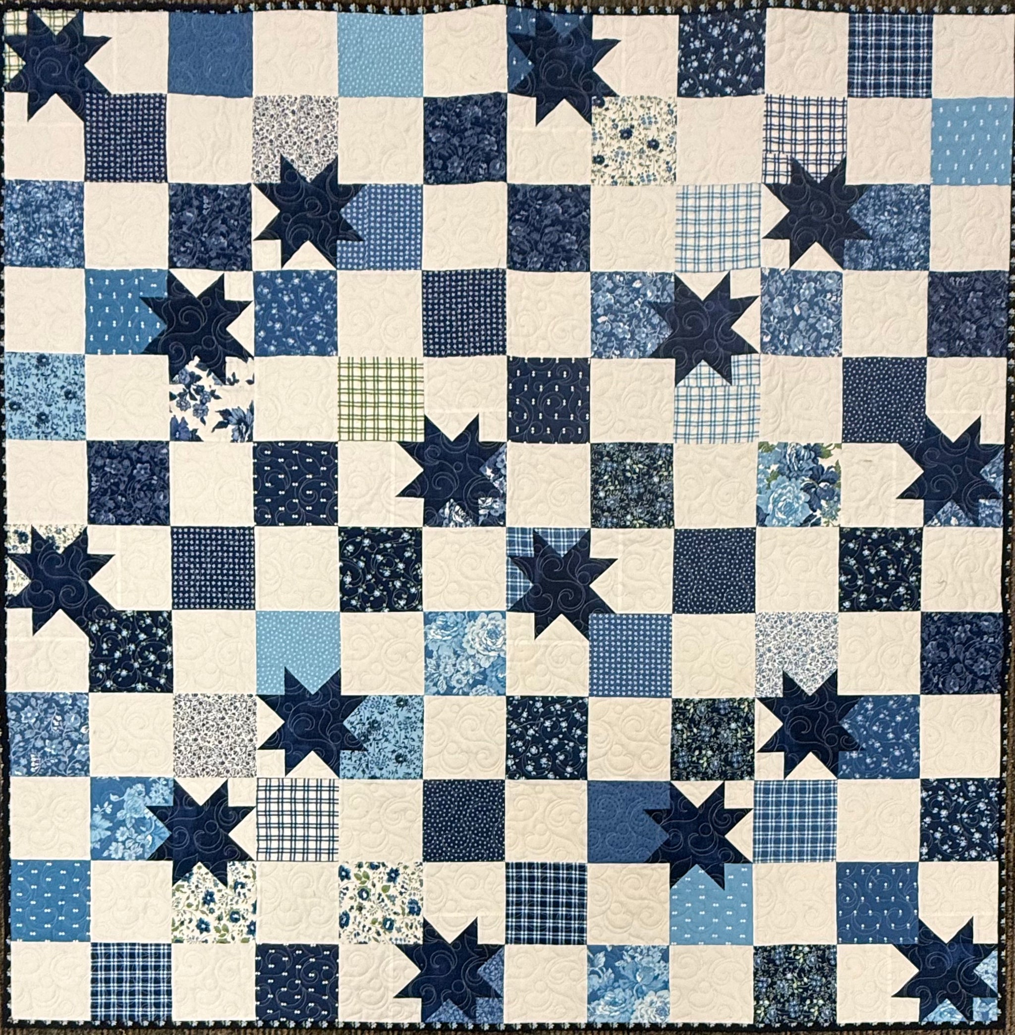 Moda's Blueprint fabric collection is a 100% cotton line designed by Camille Roskelley that features a classic blue and white color palette with some green accents. Inspired by vintage quilts and blue-and-white china, it includes dreamy vintage florals, simple dots, plaids, and antique calico prints. The collection is designed for a timeless, elegant look that works well in both traditional and modern projects.