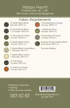 Add a little frightful fun to your home with this haunted house quilt. Complete with a black cat, ghost, pumpkins, and bat, it’s spooky in the best way. Made with Home Sweet Haunt by Stacy Iest Hsu for Moda Fabrics. Finished size is 56” x 58”.