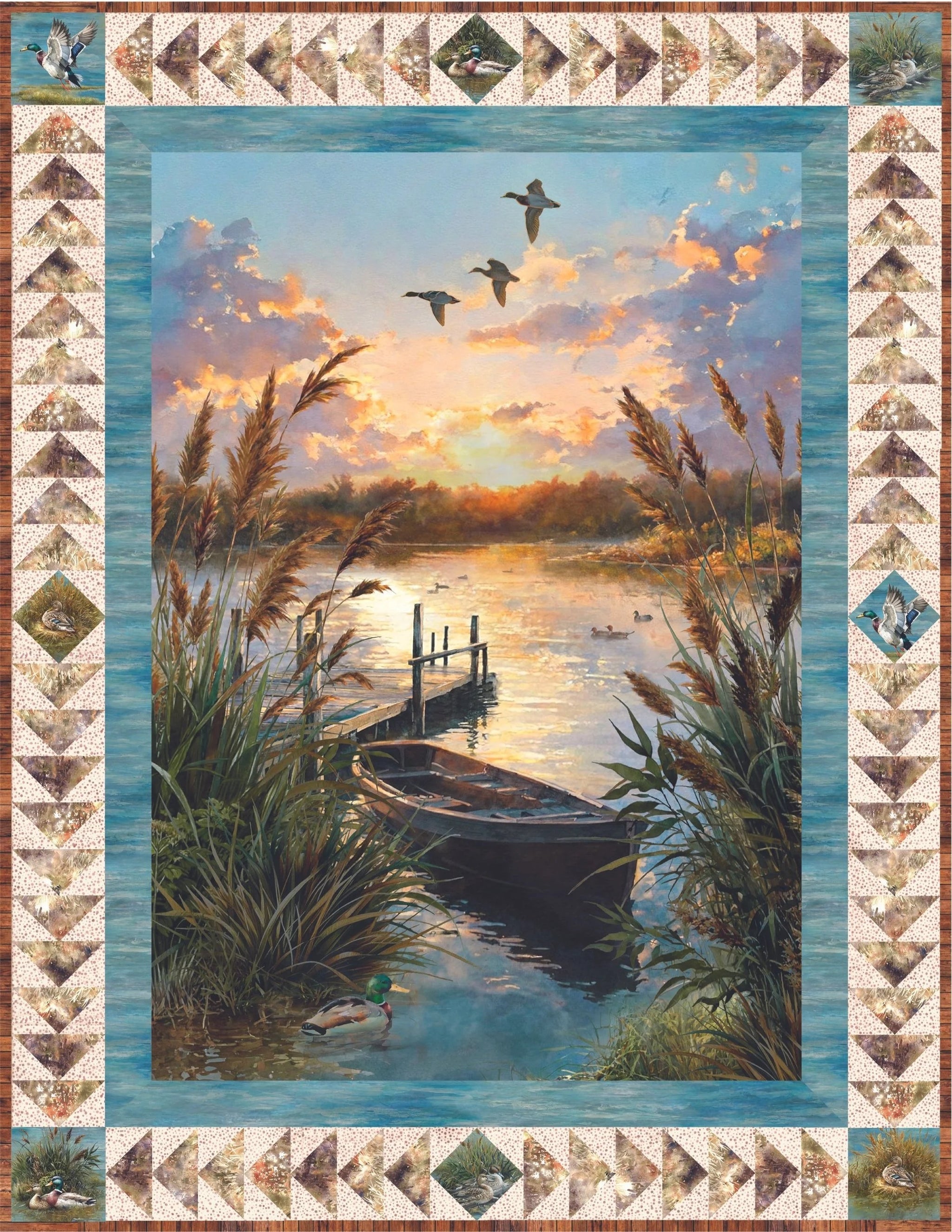 40” x 52” Pattern for a perfect wall quilt showing off a beautiful lakeside view. Flying geese surround this simple framed panel. Immerse yourself in the most serene setting and enjoy the process as you create your masterpiece. This would make a great gift for that lake person in your life.