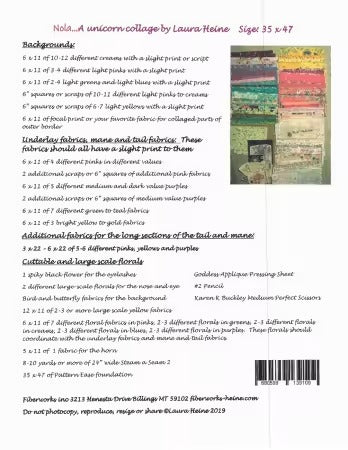 Nola…A Unicorn Collage Pattern by Laura Heine Includes color step by step instructions and full size pattern. Size 35x47