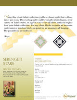 Using this ethnic fabric collection yields a vibrant quilt that will enhance any room. This exciting quilt would be equally interesting in a wide variety of fabric styles, or a great way to use all those batiks & brights from your fabric collection. Use any three blocks to create an awesome tablerunner or join four blocks on point for an amazing wall hanging.