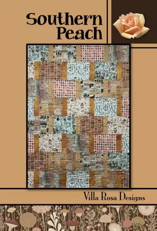 Discover the charm of the Southern Peach quilt, a beautifully crafted piece measuring 44in x 60in, perfect for adding a touch of rustic elegance to any space. This quilt features a delightful patchwork of fat quarters, showcasing a harmonious blend of soft peach, warm brown, and calming blue hues, complemented by subtle floral accents. The design is framed by a sophisticated border, with a delicate peach rose adorning the top right corner, enhancing its vintage appeal. The bottom of the quilt is adorned with a subtle floral pattern, adding to its overall aesthetic.