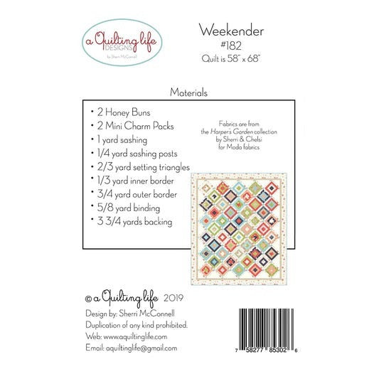 Weekender Quilt Pattern Scrap or Honeybun + Mini Charm friendly finishing at 58" x 68"