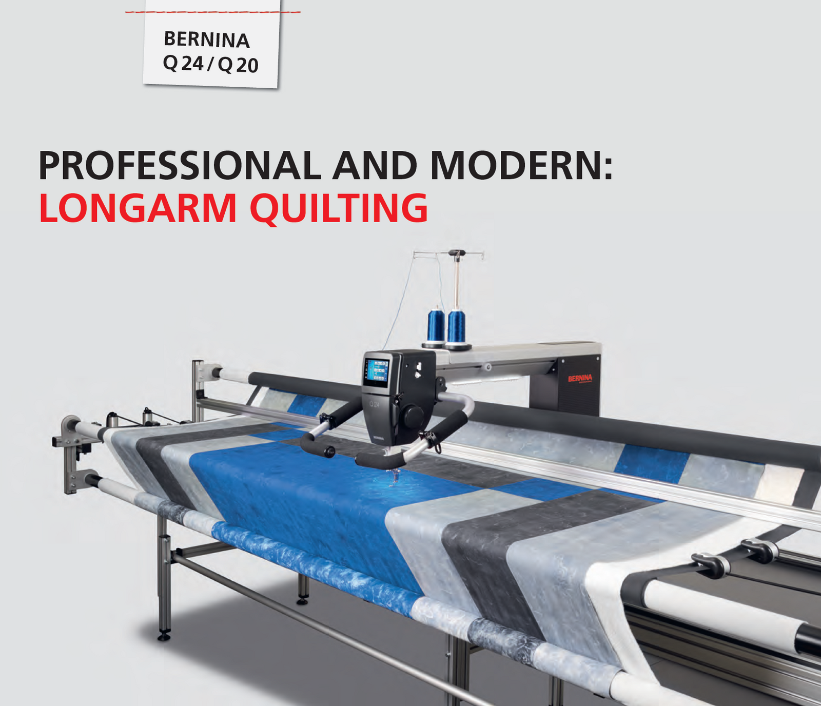 The BERNINA Q20 comes standard as a sit-down model machine with a robust quilt table. The BERNINA Q24 is designed as a frame model machine and can only be used on the PRO Frames. The large freearm on both models offers a great deal of length and height, thus helping with big quilts.