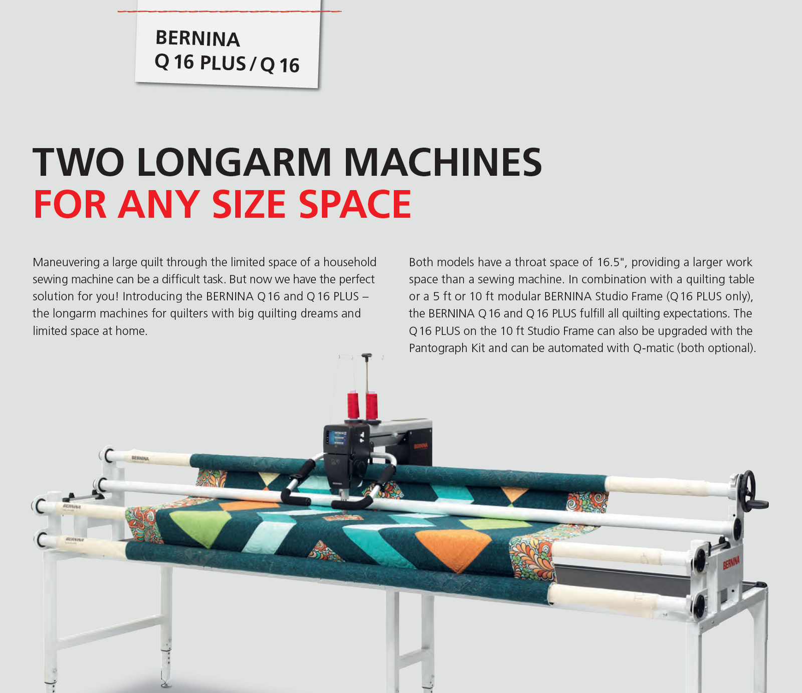 In stock and ready to go home to your quilting space, we have EVERY BERNINA LONG ARM in all configurations!