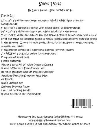 Seed Pods Collage Pattern by Laura Heine. This colorful collage is used with Laura Heine's new fabric line for Windham Fabrics "Happy Chance" will be available October 2021. Colors include golds, pinks, fuschias, greens, teals, oranges, purples and blue. This pattern includes color photos and step by step instructions. Finished size 34in x 24in.